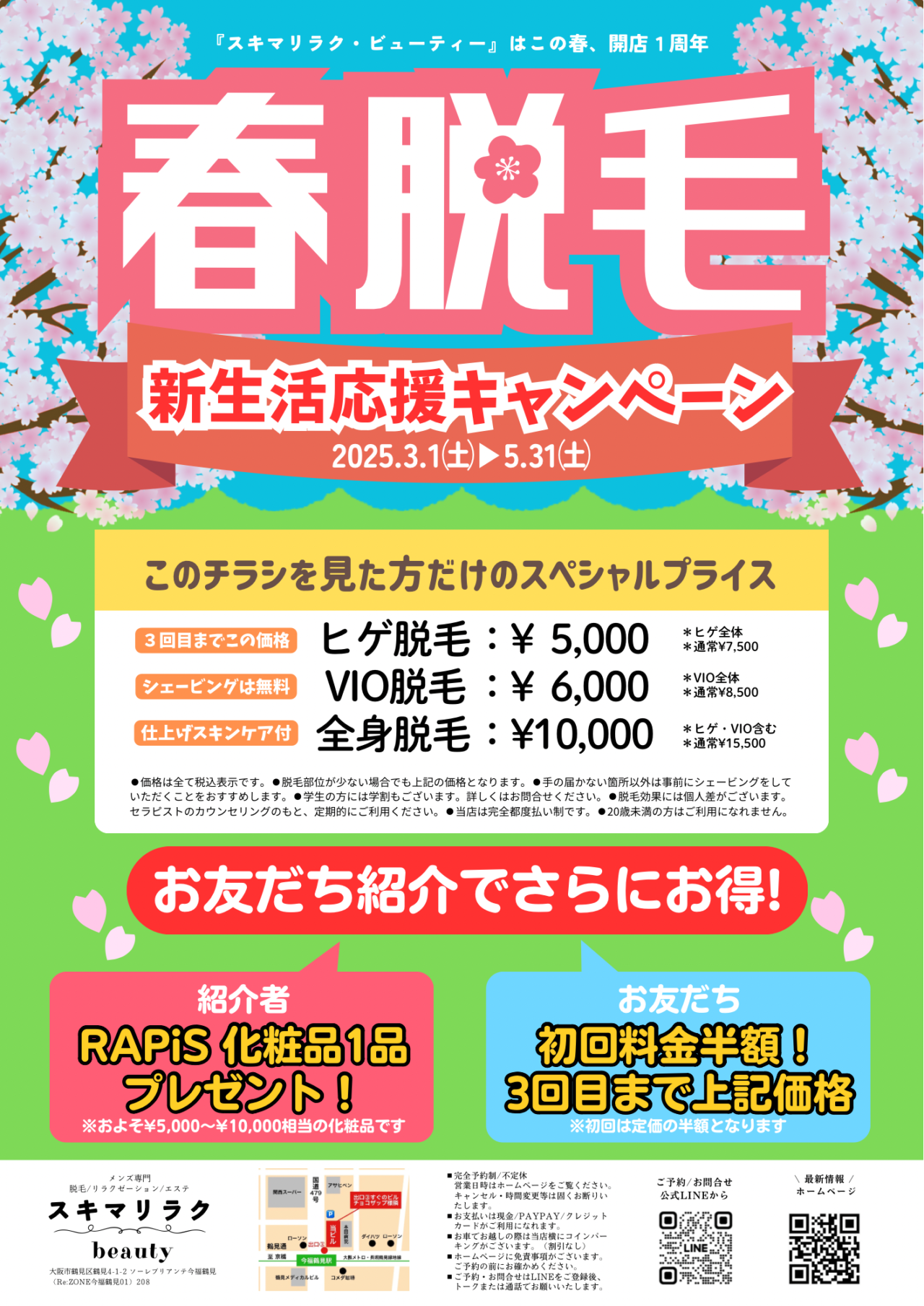 【大阪市鶴見区】今福鶴見駅前にある、メンズ脱毛サロン『スキマリラク・ビューティー』で、開店1周年イベントが実施されます。