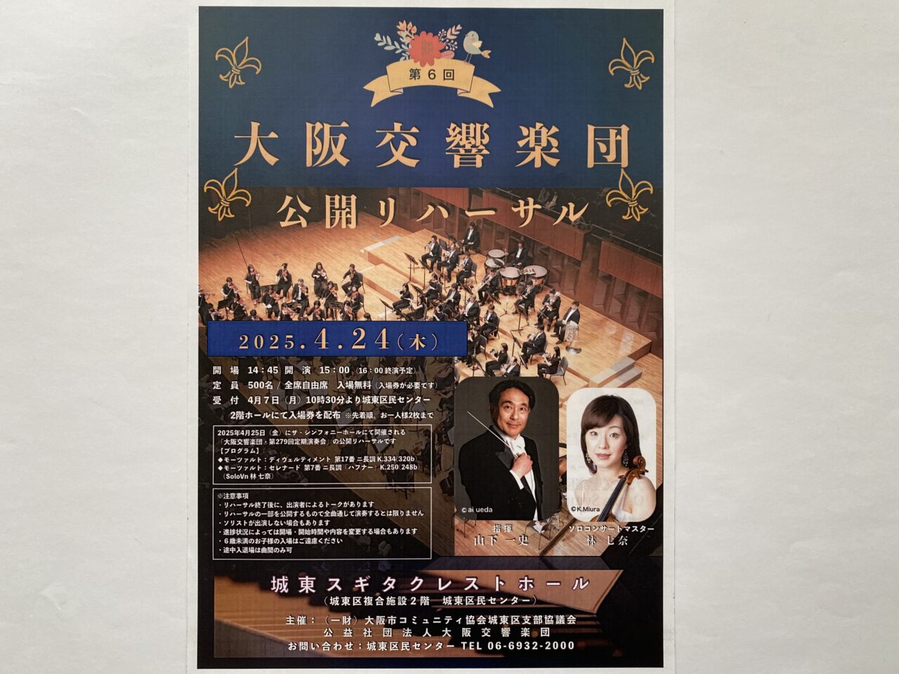 【大阪市城東区】観覧無料♪4月24日(木)大阪交響楽団 定期演奏会の『公開リハーサル』が開催されます。