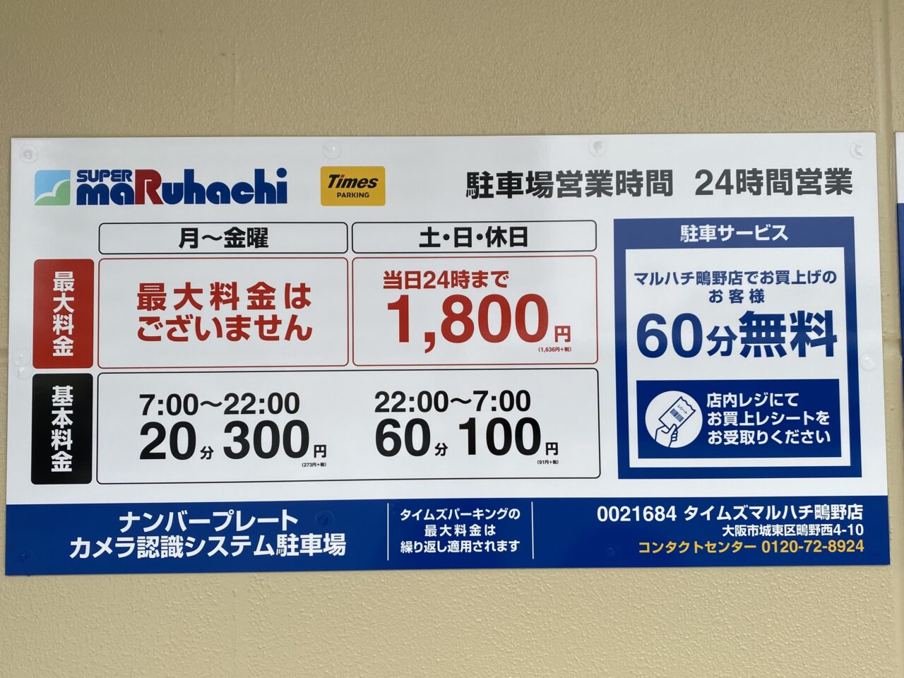 マルハチ鴫野店で買い物をすれば60分無料になります。
