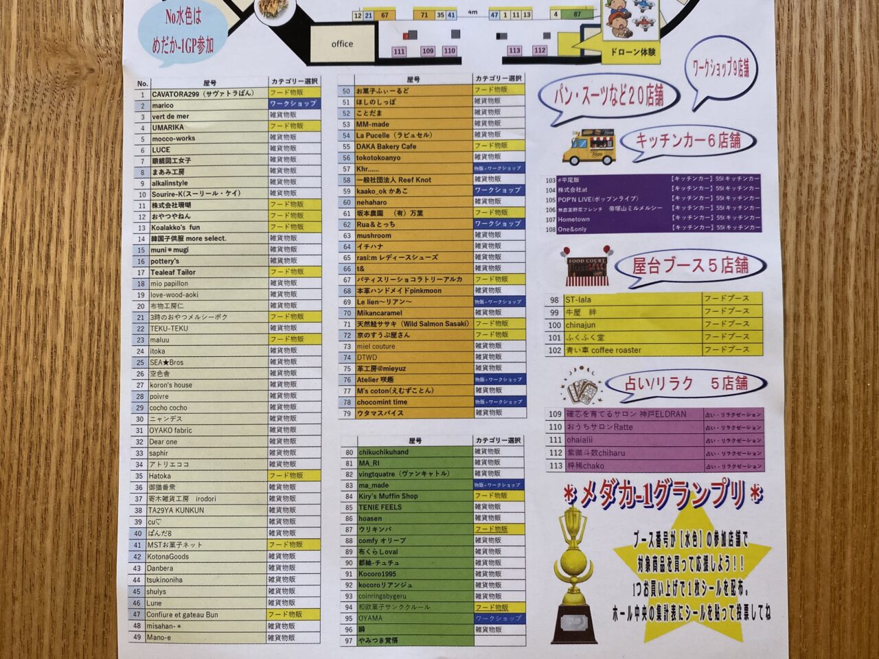 ハンドメイド雑貨、パンやスイーツ、占いやリラクゼーションなど、さまざまなお店が100店舗以上集まりますよ。
