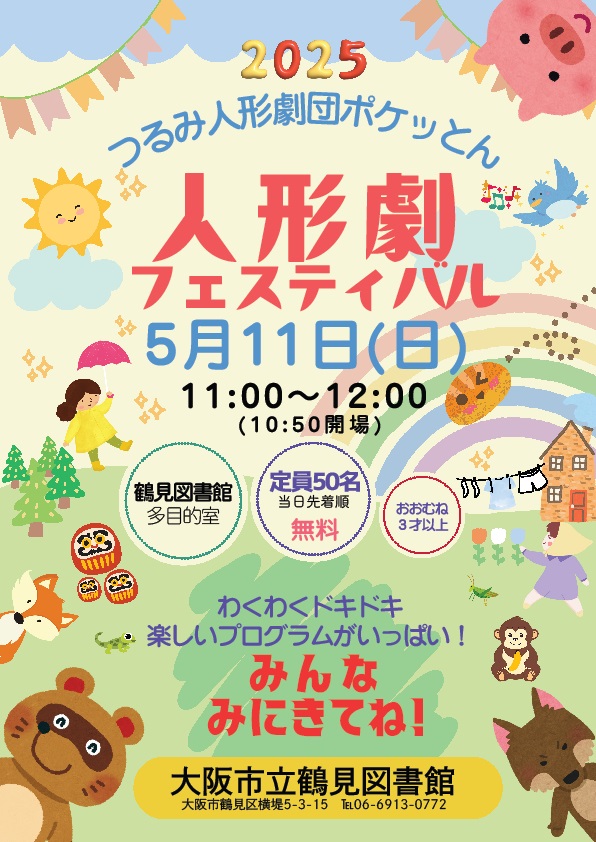 【大阪市鶴見区】5月11日(日)鶴見図書館にて『人形劇フェスティバル』が開催されます。