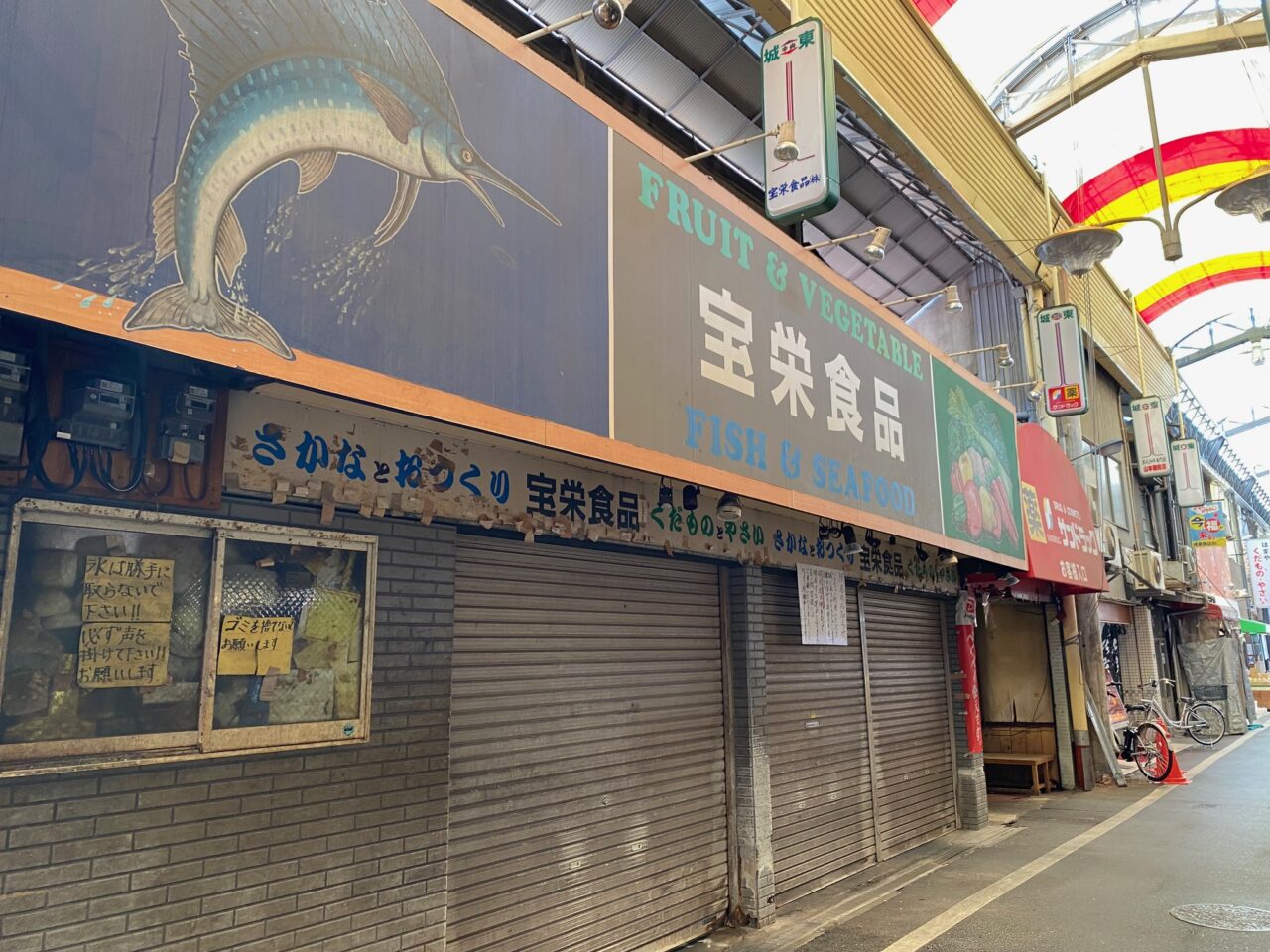 城東商店街にある、魚や野菜など生鮮食品の『宝栄食品』が、2025年4月30日(水)をもって閉店しました。