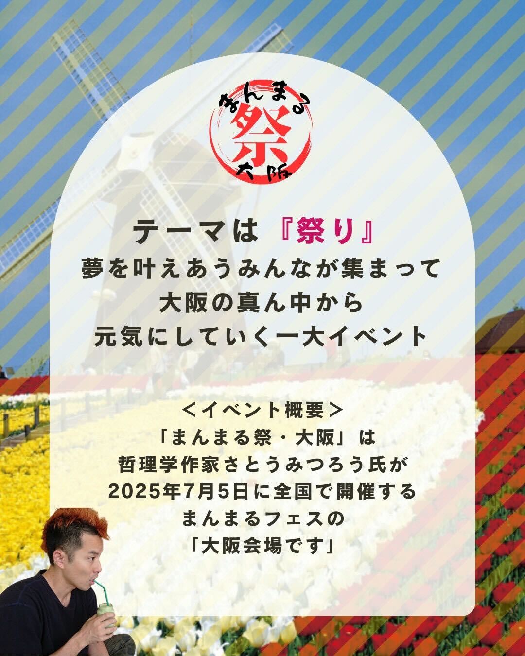 こちらのイベントは、哲理学者さとうみつろうさん主催の【神鍋高原フェス まんまる】など各地で開催されるイベントの大阪会場となります。