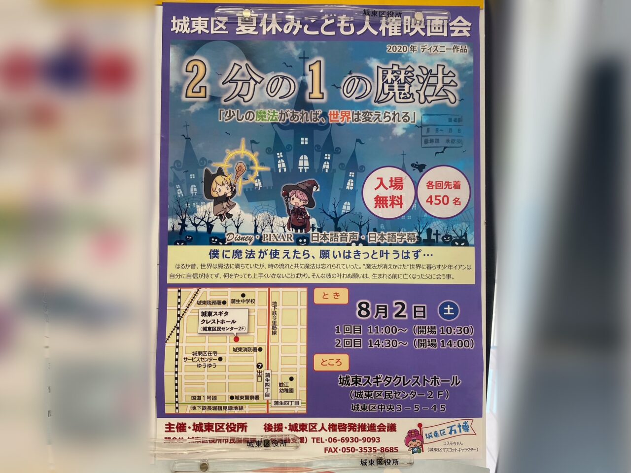 【大阪市城東区】8月2日(土)「夏休みこども人権映画会」にて、映画『2分の1の魔法』が上映されます。